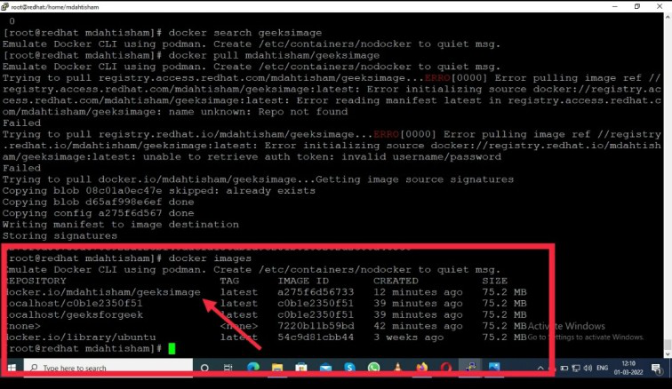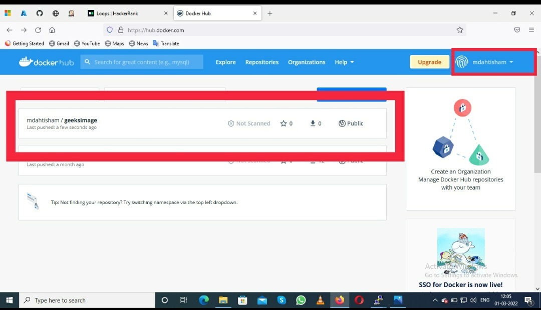 注意:下面您可以看到已成功推送到 docker hub 的 Docker 镜像:mdahtisham/geeksimage