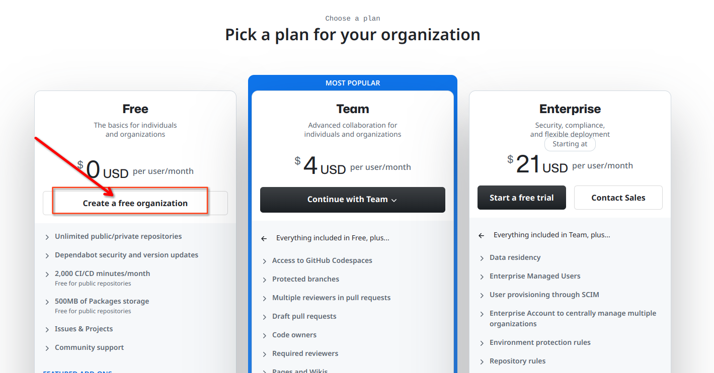浏览器打开链接 https://github.com/organizations/plan