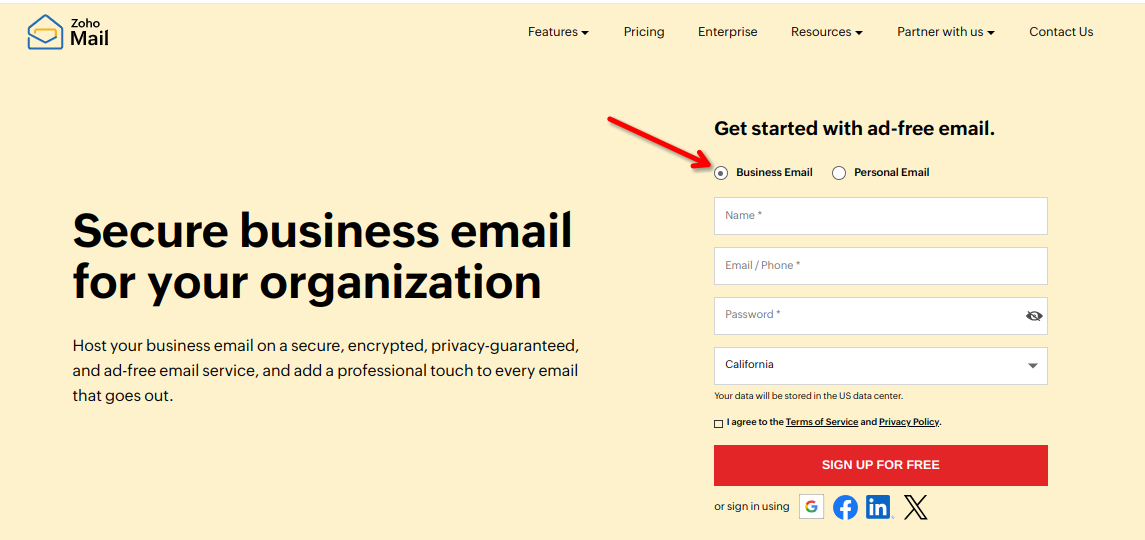选择 Business Email,再点击 SIGN UP FOR FREE