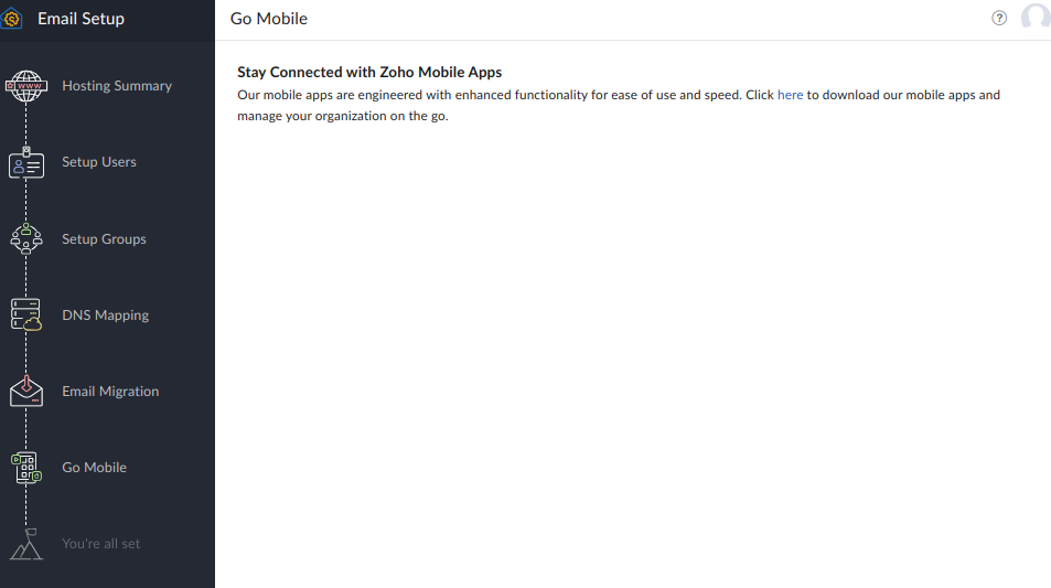 手机上点击Zoho Mobile Apps,下载 Zoho Mobile Apps,连接邮箱。可以跳过此步骤,后续在来设置 Zoho Mobile Apps。
