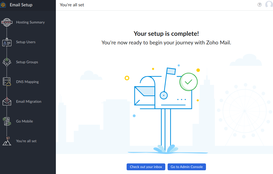 接下来可以使用 https://mail.zoho.com/zm/ 登陆邮箱。使用https://mailadmin.zoho.com/cpanel/home.do管理企业邮箱。